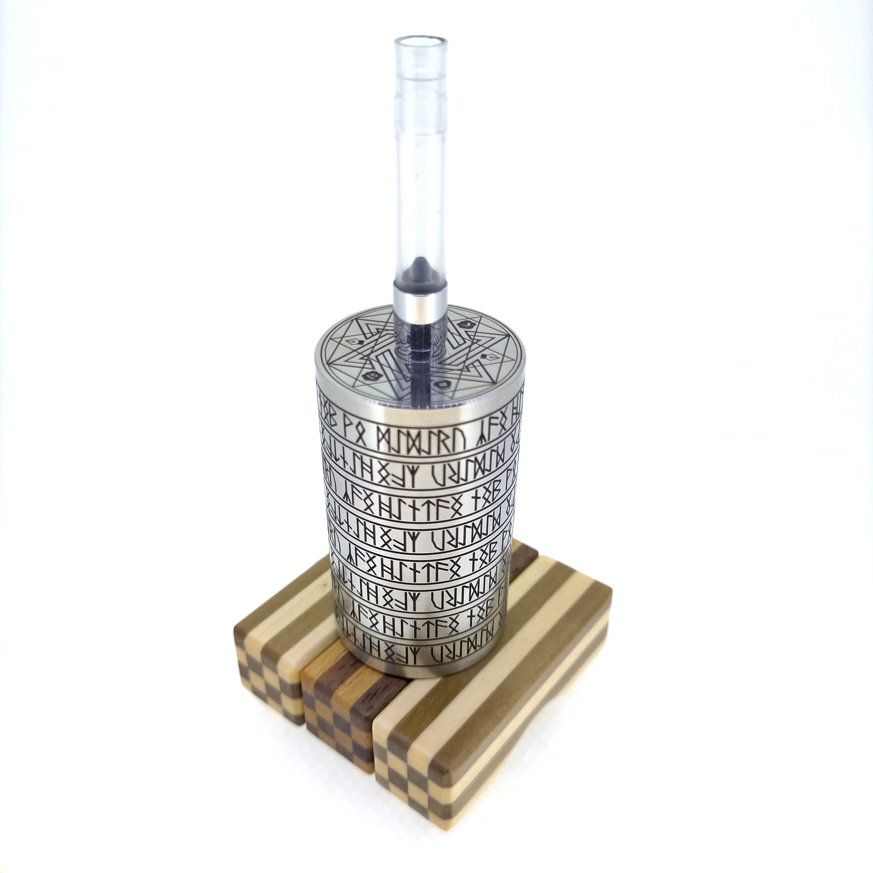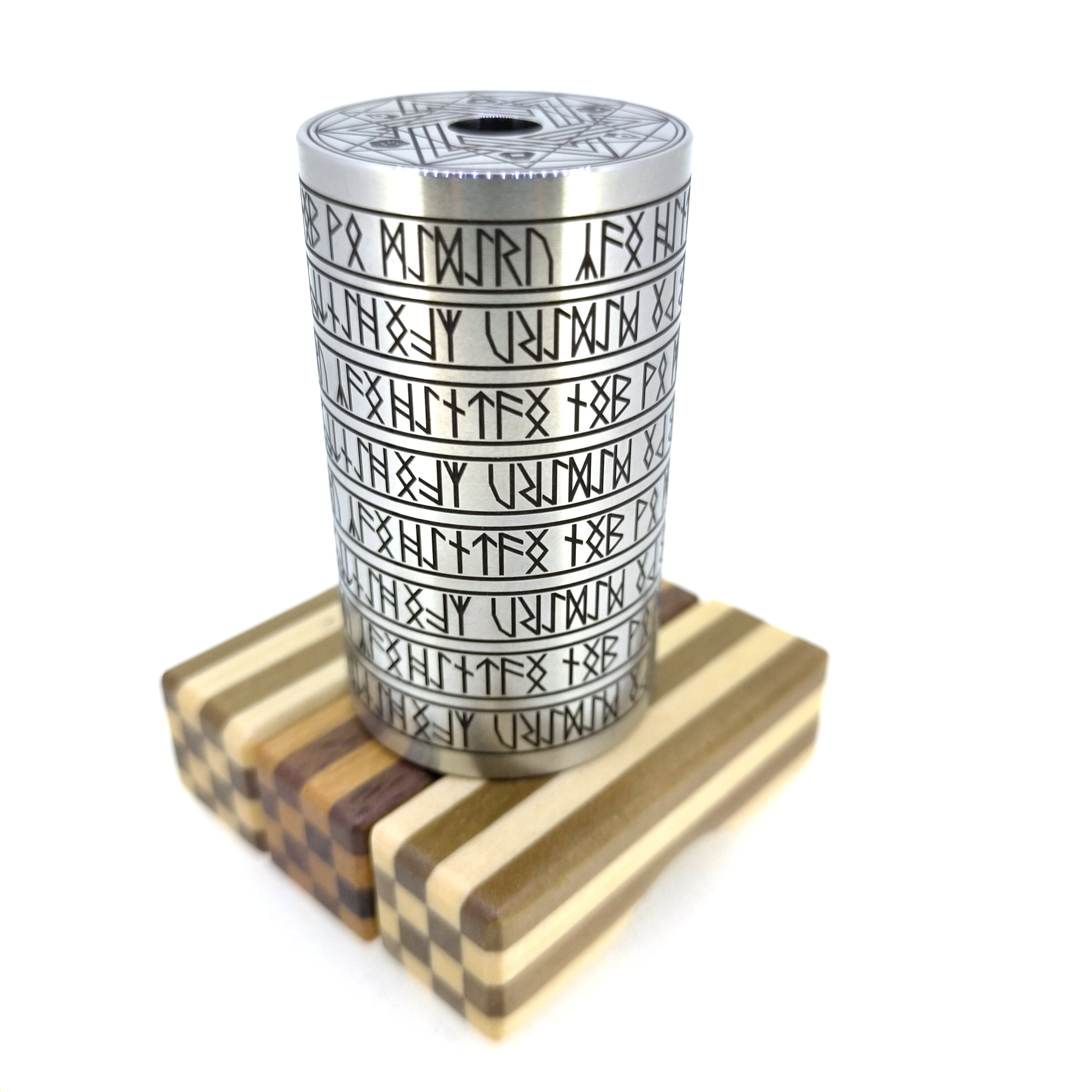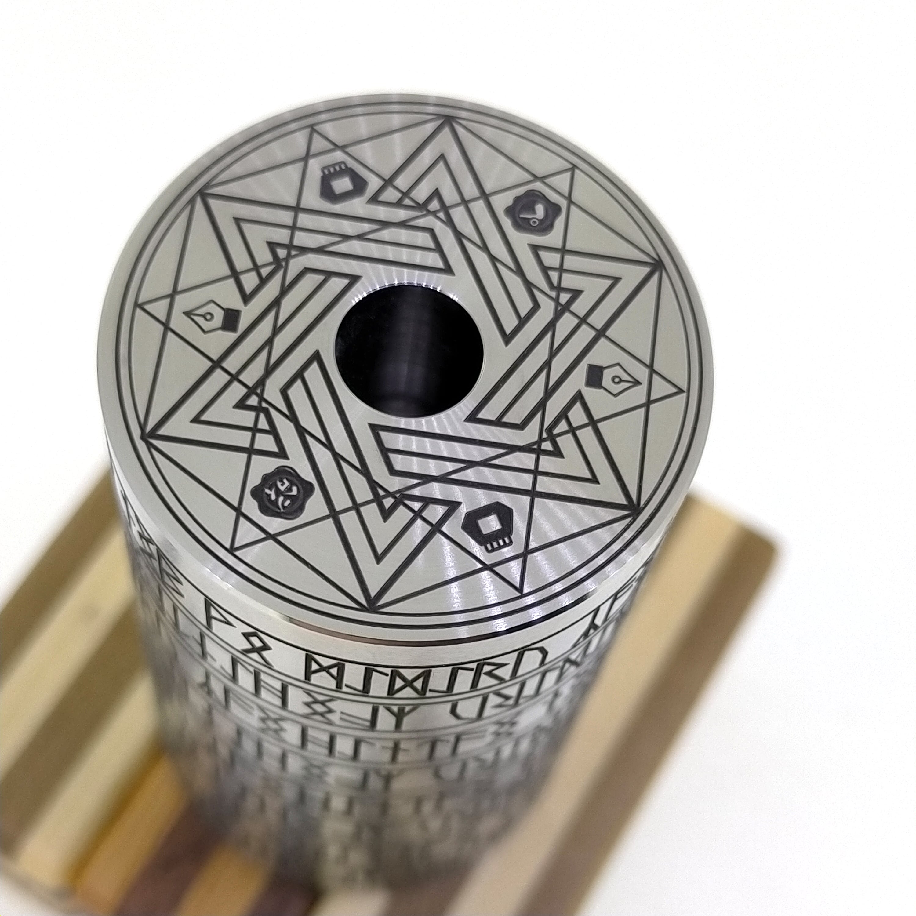 上面に魔法陣を配置し、サイドには全周にわたってルーン文字が彫られております。